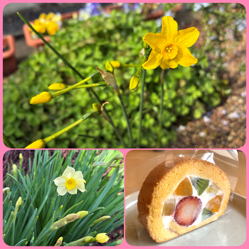 今週は桜のロールケーキとフルーツのロールケーキをご用意(後半は変わります)しました。チーズケーキはプレーン、コーヒーゼリーやカタラーナも定番でご用意しています。★アイリッシュハープコンサート 5月23日(土)が決まりました。改めて掲載いたしますのでお申し込みは明日4月1日(水)より開始いたしますのでよろしくお願いいたします。今週もどうぞよろしくお願い致します。