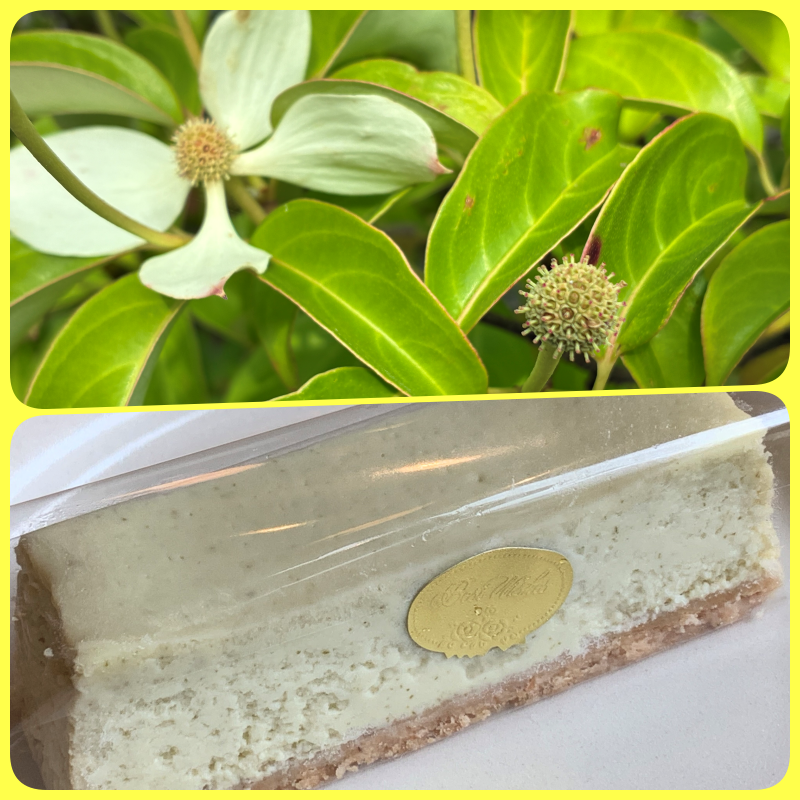 今週はこの夏初めての青じそのチーズケーキをご用意しました。”青じそ?”と思われるかもしれませんが大人なお味のチーズケーキです。一度召し上がってみませんか?ロールケーキはパイナップルにしました。紅茶のゼリー、コーヒーゼリー、カタラーナと夏らしいお菓子が並びました。庭のヤマボウシも総苞片と呼ばれる白い花のような部分が落ちて実が大きく顔を出し始めました。熱中症に気をつけながら今週もどうぞよろしくお願いいたします。