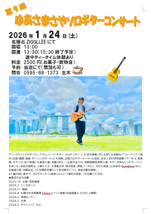 穏やかに始まりました2026年、本年もどうぞよろしくお願い致します。 1月24日(土)に予定しています”第9回ゆあさまさやギターソロコンサート”が近づいてまいりました。お申し込みのお客様は今一度、日にち、時間のご確認をお願い致します。今週はイチゴのロールケーキ、ガトーショコラで始まりました。冬の間はイチゴを使ったお菓子が多くなると思います。 ★ささやかですが恒例のお正月プレゼント(なくなり次第終了)もご用意しています。お楽しみに♡ 今週もどうぞよろしくお願い致します。
