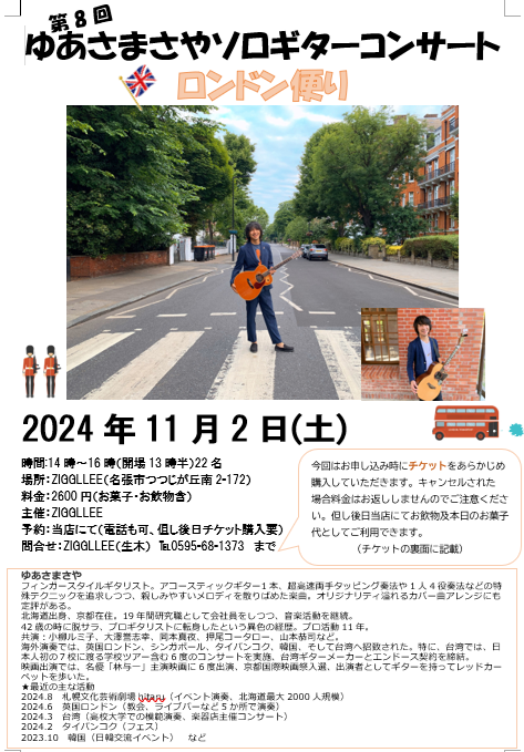 ”ゆあさまさやソロギターコンサートロンドン便り”今週土曜日!