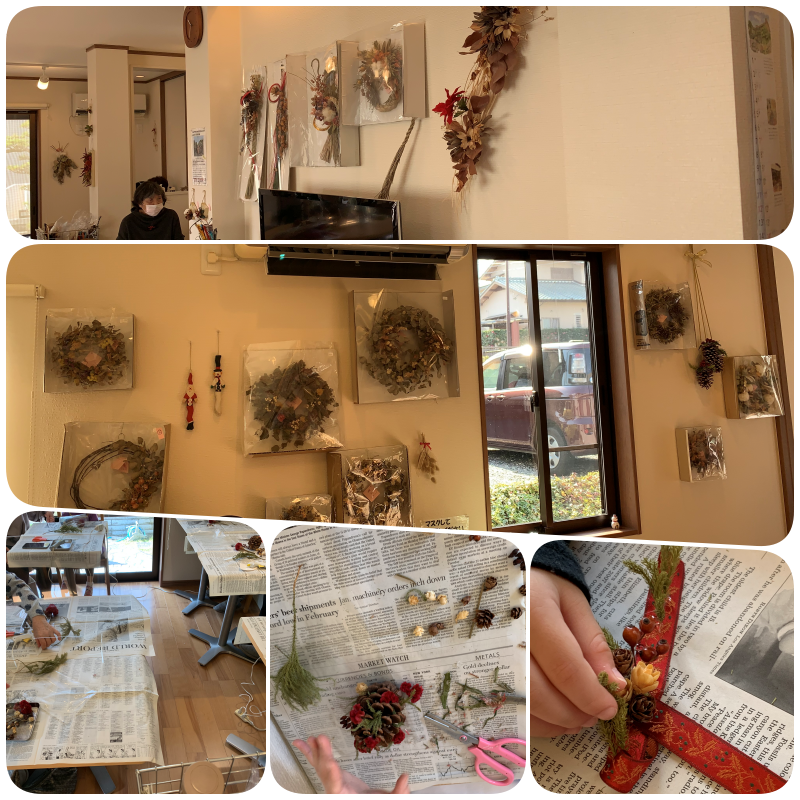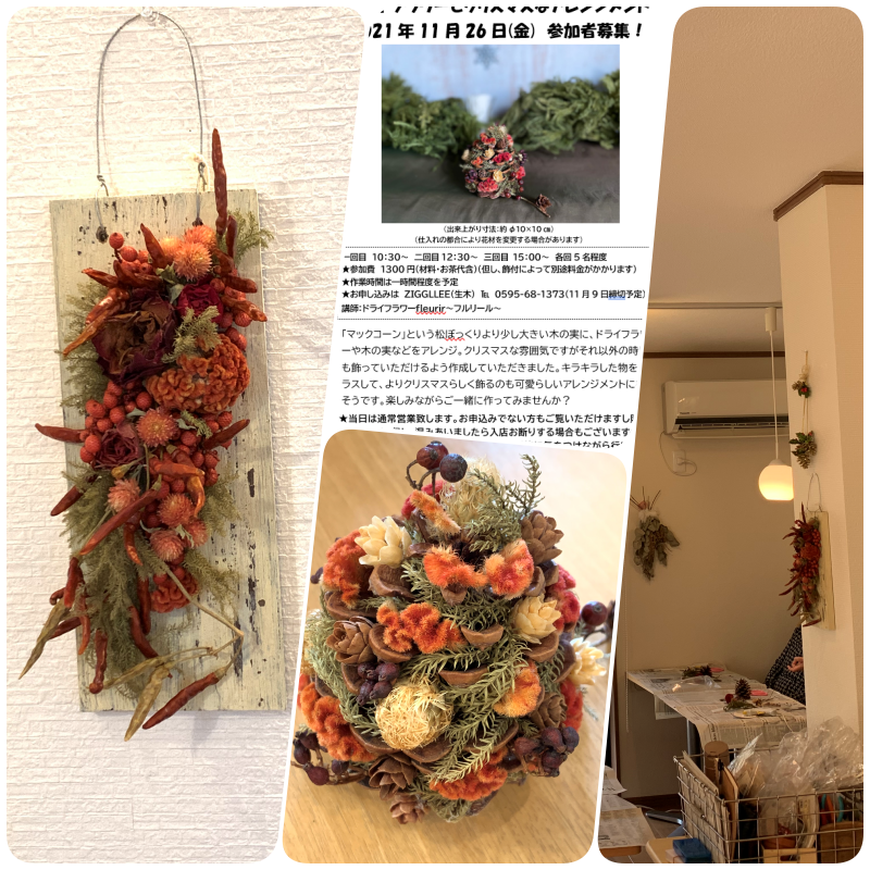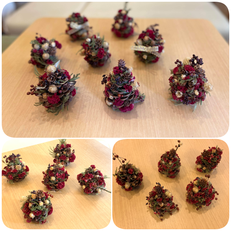先日行われました 「ドライフラワーでクリスマスなアレンジメント」たくさんの方にご参加いただき楽しい時間を過ごすことができました。ご来店いただきました皆様、そして作品展示、ワークショップをご指導してくださったドライフラワーfleurir~フルリール~の北川様本当にありがとうございました。初めてでしたがとてもいい時間を過ごすことができました。残念ながらご希望に添えなかった皆様には次回チャンスがありましたら是非ご参加いただければと思います。皆様同じ材料でアレンジしていただきましたが全く違う表情の素敵な作品が出来上がりました。
