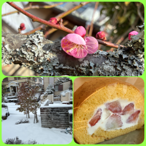 日陰にはまだ残っていますが、久しぶりの大雪にびっくり。皆様のところは大丈夫でしたでしょうか?今朝は晴れていて気温も上がるとのこと、早く春が来てほしいですね。今週はイチゴのロールケーキ、プレーンのチーズケーキをご用意(後半は変わります)しました。大雪は降りましたが、庭の梅の蕾は少しずつ開きはじめています。春はそこまで来てるようですね。★明日11日(水)は営業、午後3時より貸切になります。ご迷惑をおかけしますがどうぞよろしくお願いいたします。今週もどうぞよろしくお願い致します。