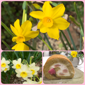 どこへ行っても桜が満開です🌸春爛漫!遅かった庭の匂い水仙も開き始めました。今日は午後からの営業でしたが気温が高いので一気に全部開いてしまいそうです。今週は桜のロールケーキ、ごまのシフォンケーキをご用意しました。(後半は変わる予定です)今月のコーヒーは「炭焼スペシャルブレンド」「苦い」というイメージがあるかもしれませんがそれほどの苦みは無くミルクを入れた際のバランスもありコーヒー感の残るブレンドになっています。甘いケーキと一緒にいかがでしょうか?今週もどうぞよろしくお願いいたします。