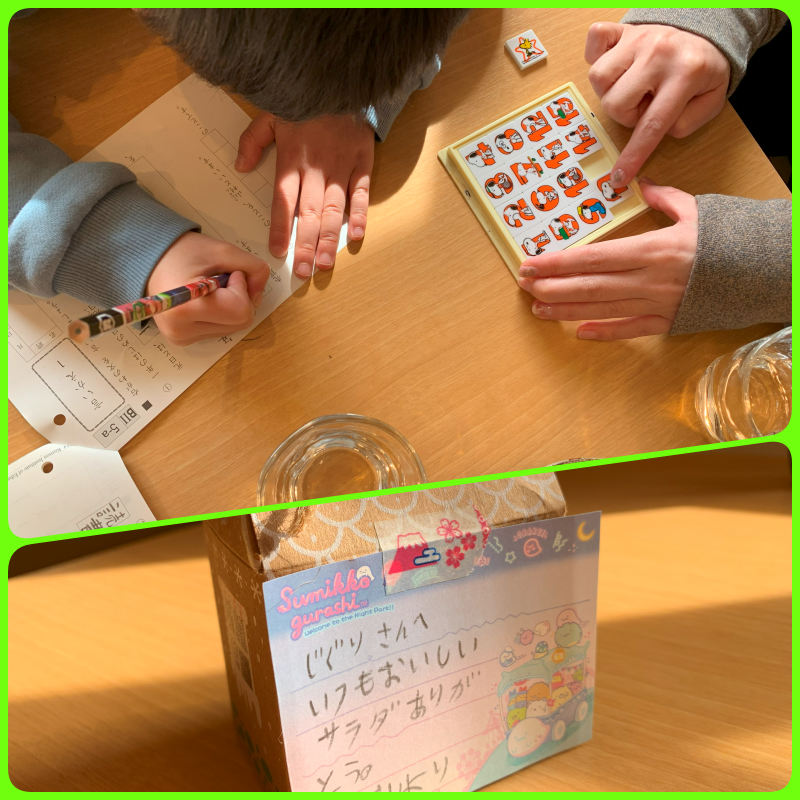 1月も半ばを過ぎ,寒さも一段と厳しく雪もちらついています。被災された方々の事を思うと大したことはありませんが、春が待ち焦がれます。さて先日かわいいお客様からとても嬉しいプレゼントをいただきました♡サラダがお好きなご家族でよく来て下さるのですが、今日は宿題とママのゲームと競争です。