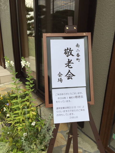 お天気が心配されましたが雨も大したことなく小雨ですみ、暑くもなくいい感じのうちに敬老会が終了しました。敬老会と言いましても皆さんお元気で、ご近所に住んでいても普段なかなか話すこともない方とお茶をしながらゆっくりとお話したり、くじ引きをして景品をいただいたり和やかなうちに終わることが出来ました。 季節は確実に秋へと変わってきています。夏のお疲れが出ませんように気を付けてお過ごしください♡