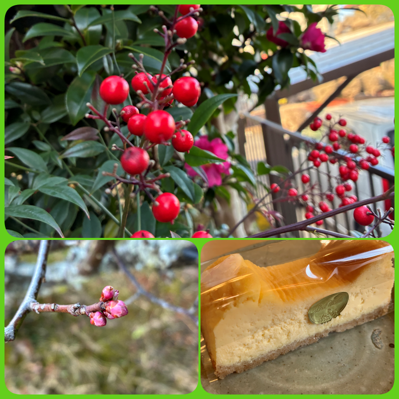 今週はイチゴのロールケーキ、プレーンのチーズケーキをご用意しました。(掲載が遅くなりロールケーキが売り切れました。また作ります。笑)庭を見ると梅の蕾が思ったより大きく膨らんでいて、時々暖かい日があるせいでしょうか、いつもの年より早く咲くかもしれません。